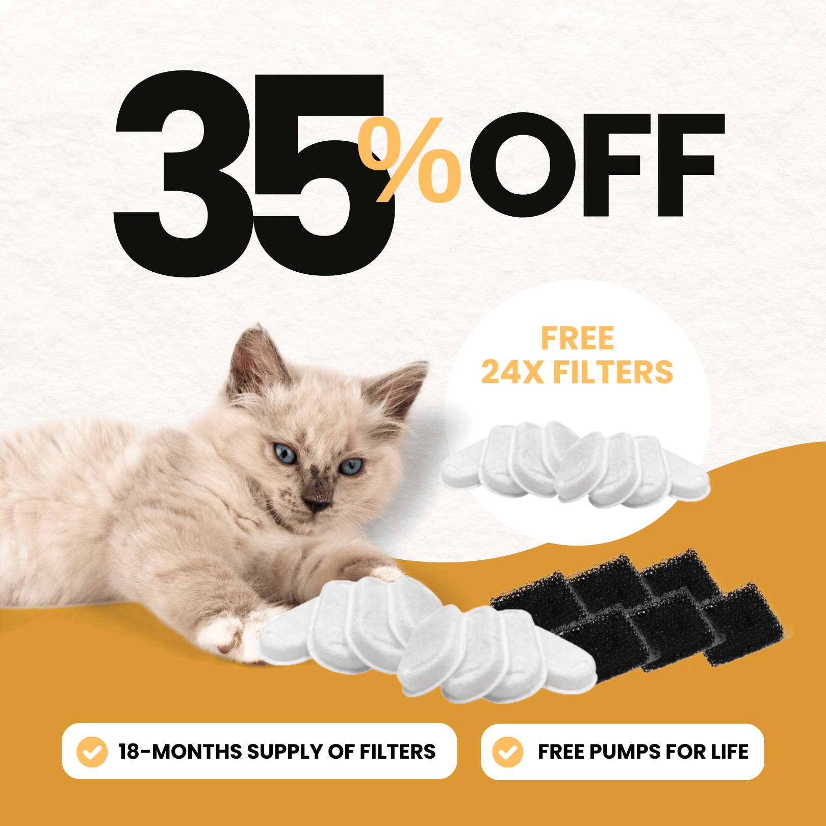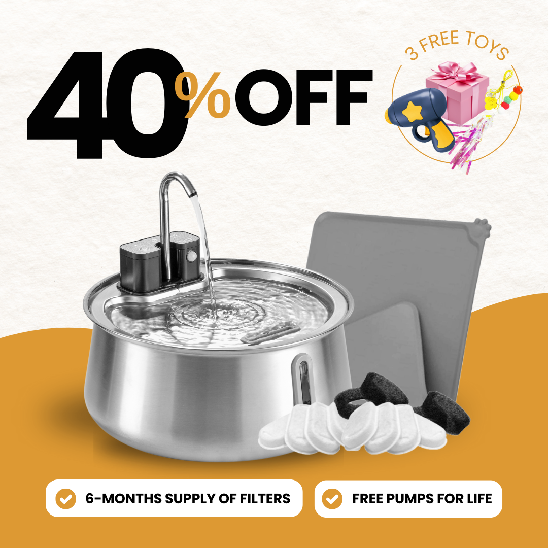 • Stainless Steel Replacement Filters Keeps your cat's water clean