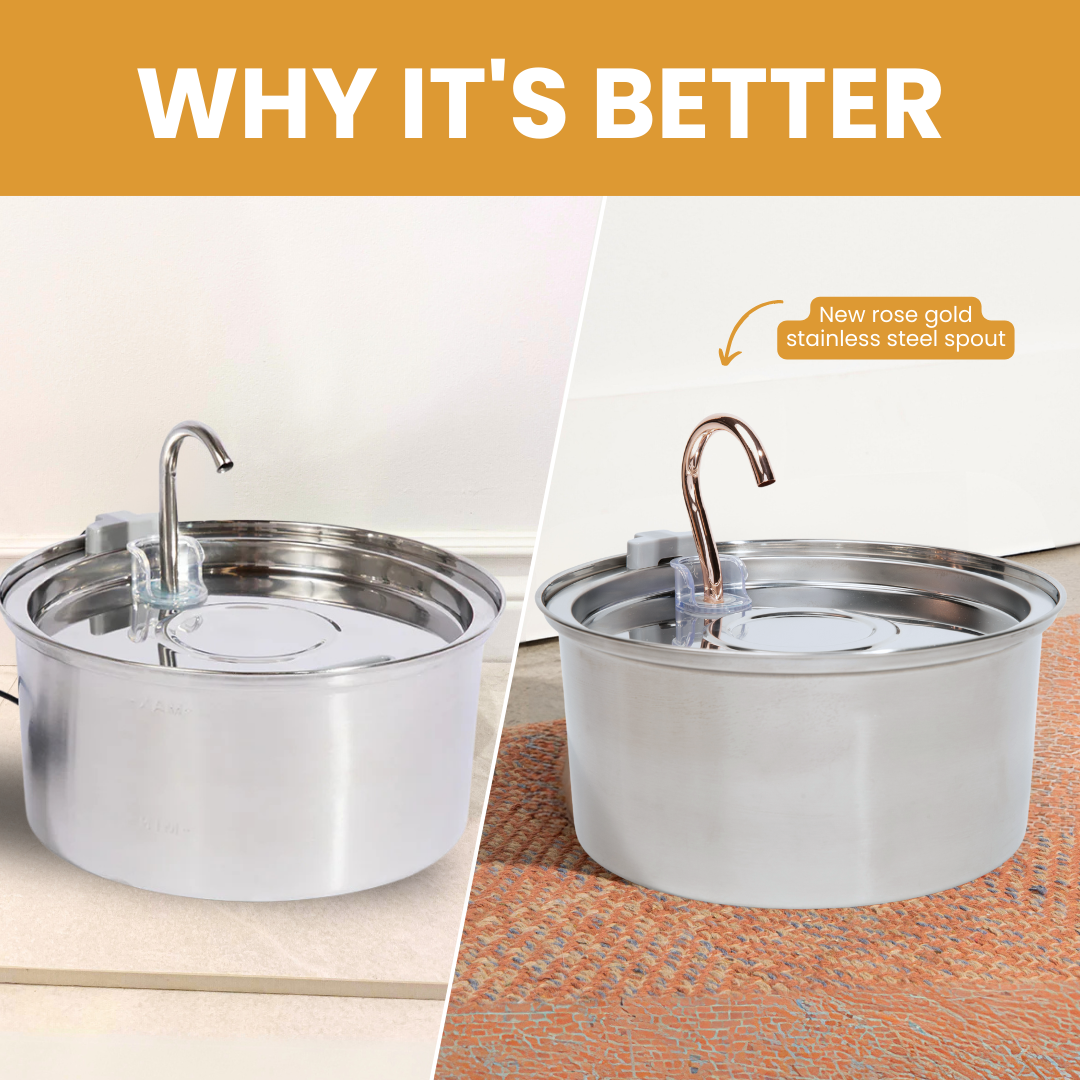 We’ve upgraded the spout to rose gold stainless steel. This new high-quality stainless steel is designed to last for years, so your cat can continue to drink from that much-loved faucet design.