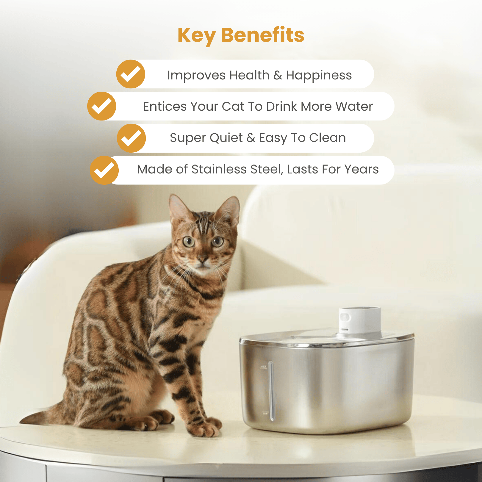 Our quiet operation supports your cat’s preference for calm, anxiety-free hydration, enticing them to drink more and stay healthy.