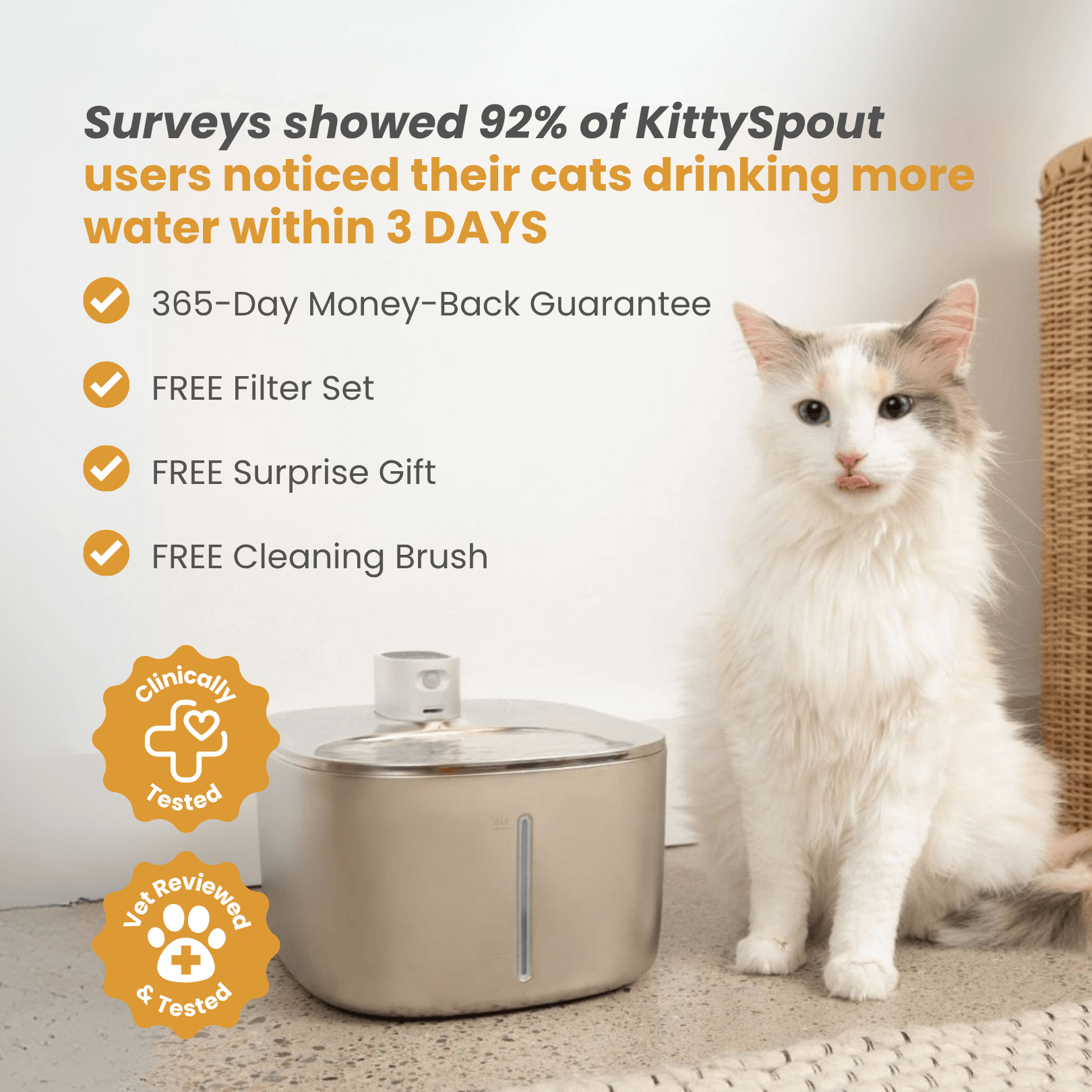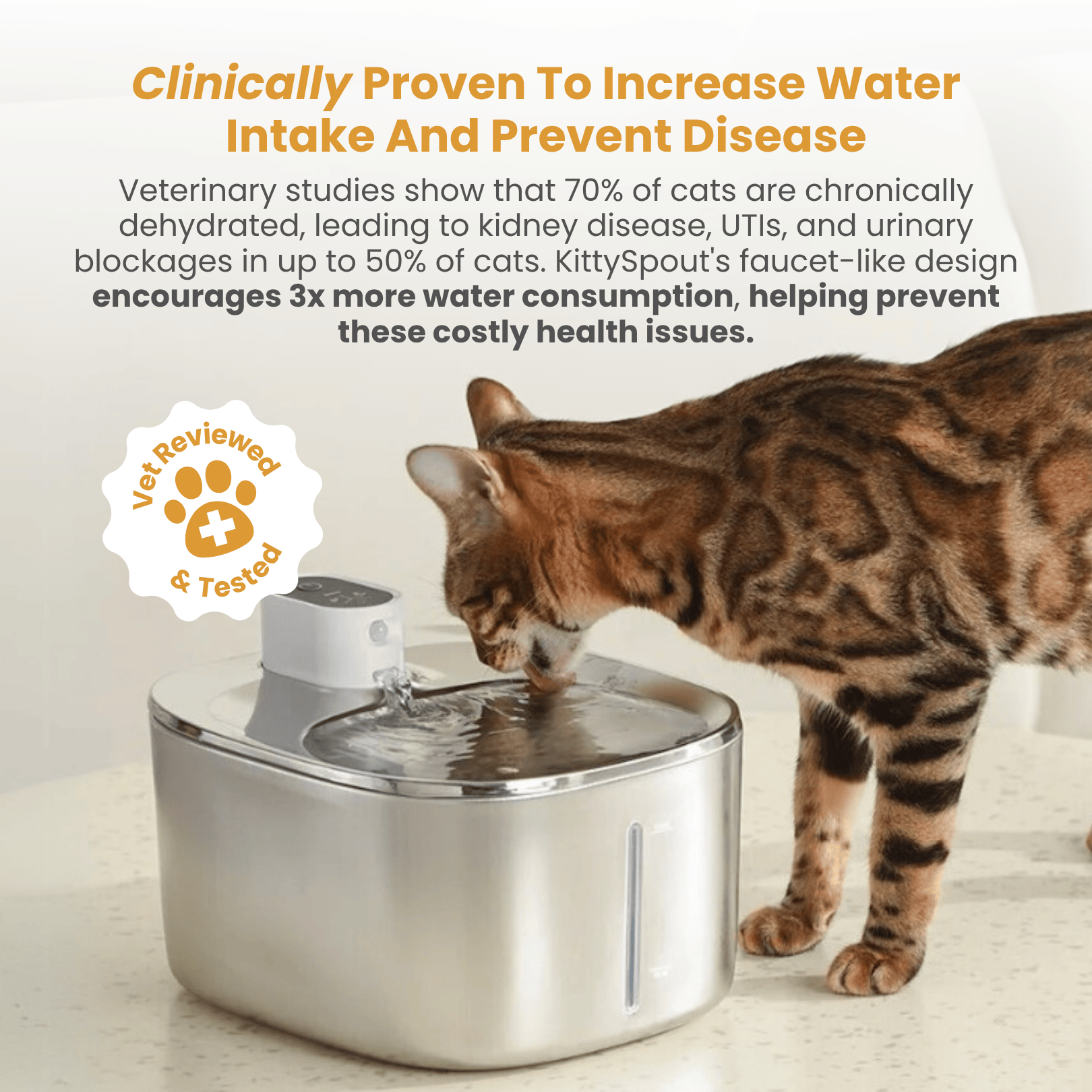 More than 3000 domestic cats die each year because of health issues due to poor hydration. Kidney diseases, urinary tract infections etc. will likely impact 1 in 3 cats or more. Sadly, it’s often too late before cat parents notice.