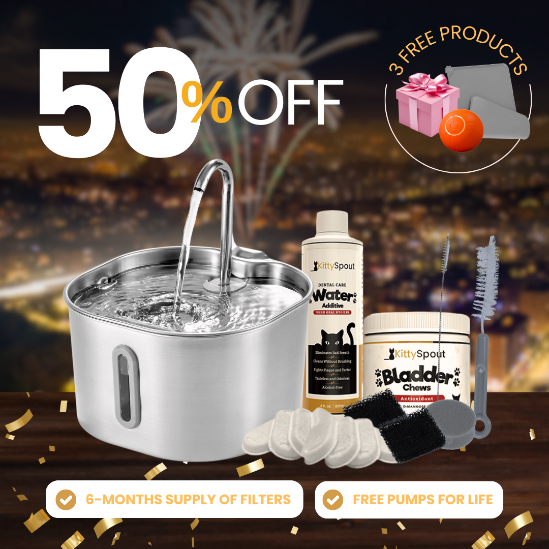 The Triple Action Carbon filter removes magnesium, calcium, hair, dirt and other impurities from your cats water. These minerals can accumulate in your pet’s lower urinary tract and lead to urinary tract infection.